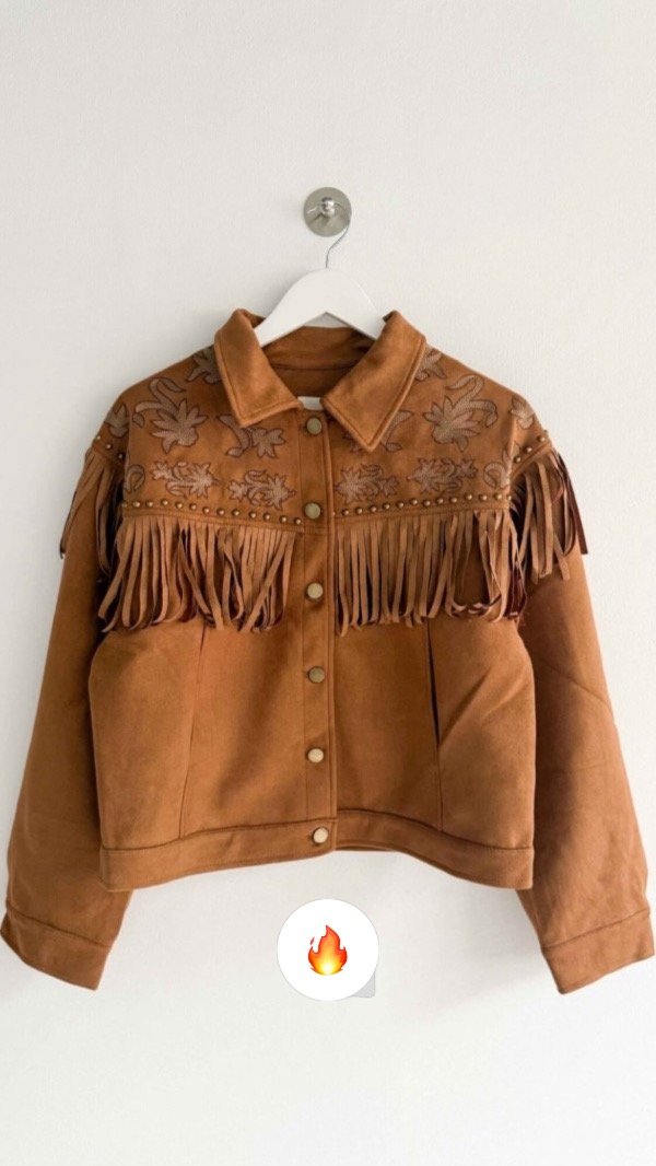 Campera abotonada de gamuza con flecos