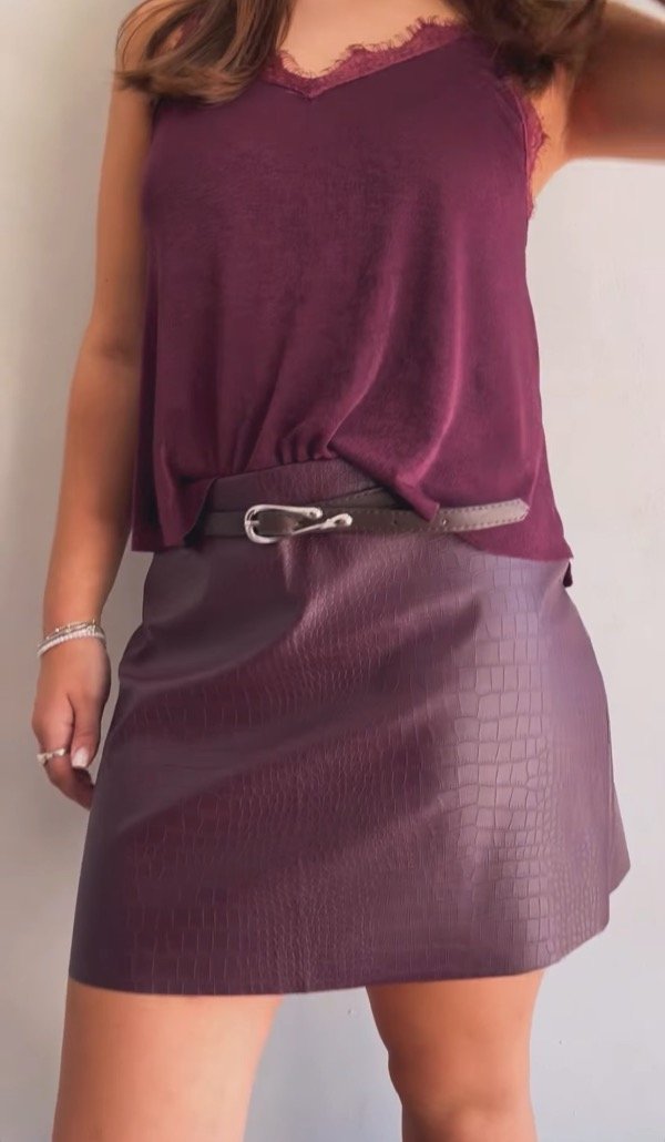Pollera cuerina con cierre en la parte de atras