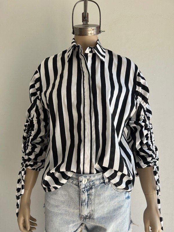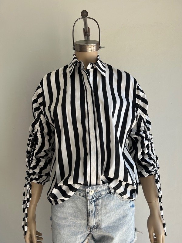 Camisa rayada de tela :poplin con frunce en las mangas