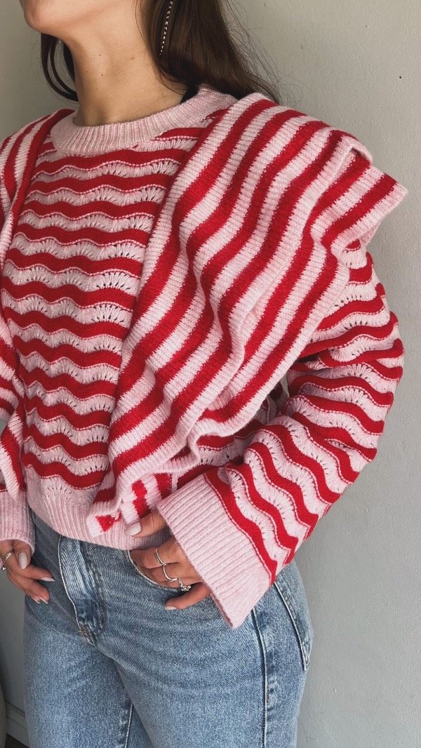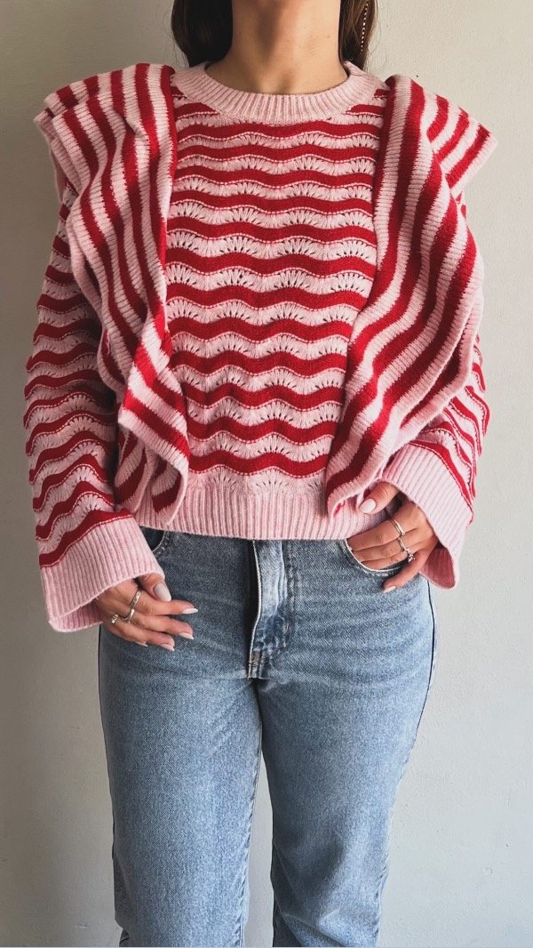 Descripción: Sweater de cuello redondo. Mangas largas. Detalle de calado y acabados con volantes.