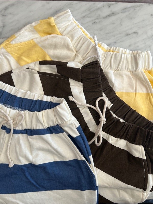 Descripción: short con cintura elastizada. Bolsillos delanteros. RAYAS INDEFINIDAS.