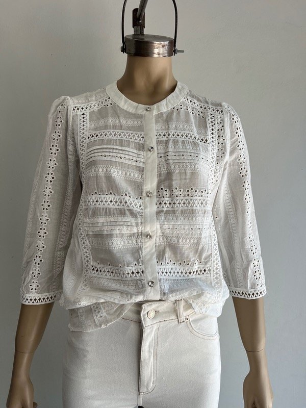 Blusa broderie con detalles de botoncitos diamantes
