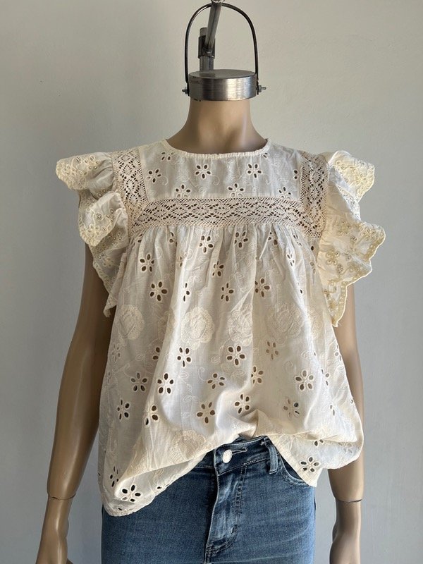 BLUSA DE LINO BORDADO CON PUNTILLA Y LENTEJUELAS